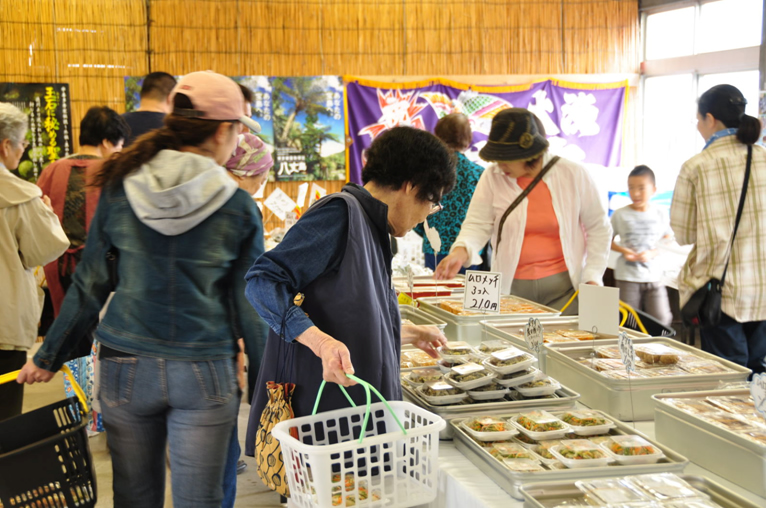 これは月に一回漁業協同組合女性部が行っている朝市の様子です。 おいしそう。いろいろなお魚を使った料理が並んでるね。たくさんの人が買いに来てる。 漁業協同組合というのは、漁師さん達の集まりで、みんなで助け合って漁業を支えるしくみです。