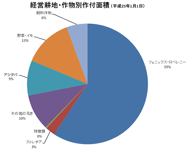 ロベだけで、島の農業出荷額の56%を占めている。冠婚葬祭用の花や祭壇に使われることが多い。