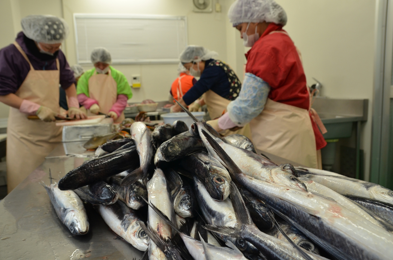 給食で食べたムロミンチを作っている漁業協同組合女性部の人たちはどのような仕事をしているとおもいますか。 (予想をした後に写真・ビデオをみて調べる。) 八丈島の魚を加工してミンチにして、新しいメニューを考えている。 講習会で栄養士さんたちに島の魚の料理などを紹介している。 学校給食、都内食堂に出している。 島のイベントで観光客に宣伝している。 八丈島の魚で作ったものをお土産として売っている。 出前授業をしている。 漁師さんたちが命がけで獲った魚を無駄にしないようにしたい。 東京都のもっと多くの人に東京都の魚をもっと食べてほしい。 |